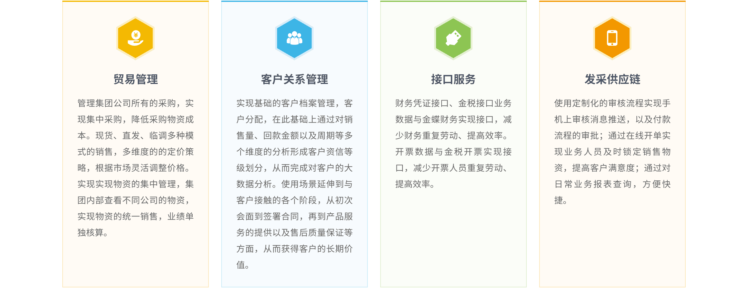 以河南豫之鋼貿(mào)易有限公司的管理模式為基礎(chǔ),將其管理模式直接復制到河南淘鋼電子商務(wù)有限公司、河南豫一實業(yè)有限公司、陜西淘鋼電子商務(wù)有限公司等數(shù)家集團分公司,獨立數(shù)據(jù)庫、獨立運營,滿足了各個分子公司的信息化要求,同時也實現(xiàn)業(yè)務(wù)系統(tǒng)與財務(wù)軟件、金稅軟件、微信業(yè)務(wù)協(xié)同的一體化管理。