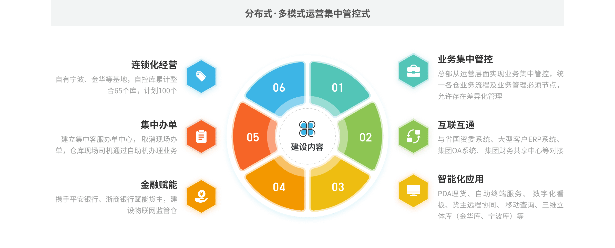 目前全國172個網(wǎng)點高效聯(lián)動(其中自控65個、準(zhǔn)入107個,碼頭19個、泊位54個),管理倉儲面積超210萬平方,常規(guī)庫存超200萬噸,年物流服務(wù)能力5400余萬噸,同時建立全國統(tǒng)一業(yè)務(wù)集中客服中心,全面實現(xiàn)線上無紙化辦公,技術(shù)上全面支撐集團(tuán)對倉儲業(yè)務(wù)生態(tài)閉環(huán)管理。