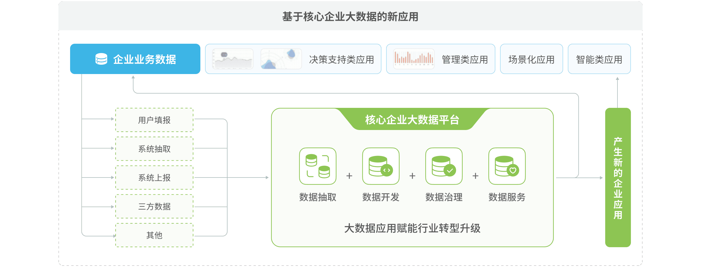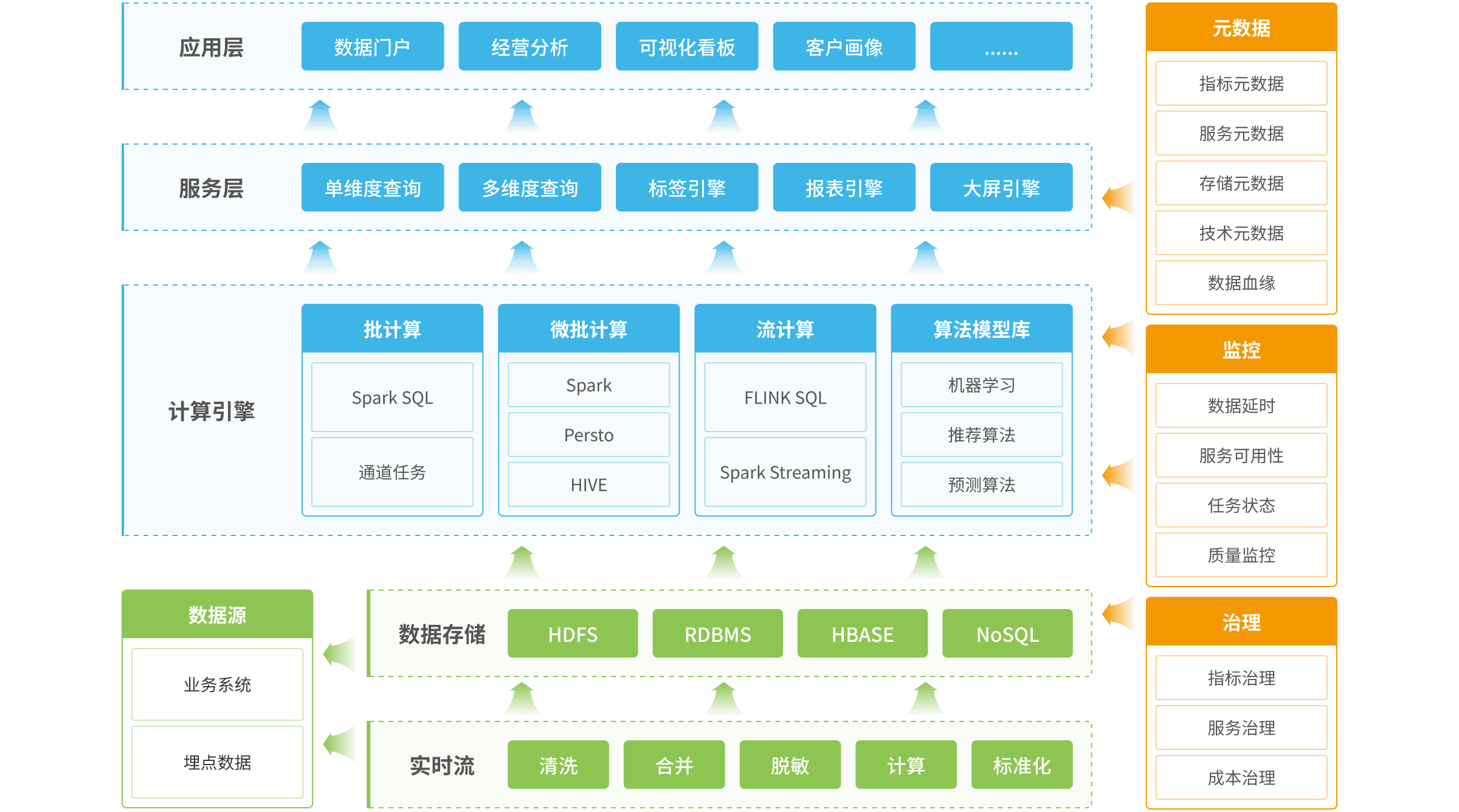 高達(dá)數(shù)據(jù)中臺(tái)基于微服務(wù)架構(gòu)精心構(gòu)建,通過數(shù)據(jù)上報(bào)和數(shù)據(jù)分析兩大核心平臺(tái),實(shí)現(xiàn)企業(yè)數(shù)據(jù)資產(chǎn)的一站式管理。數(shù)據(jù)上報(bào)平臺(tái)涵蓋數(shù)據(jù)采集、數(shù)據(jù)處理、數(shù)據(jù)管理、數(shù)據(jù)安全等模塊。數(shù)據(jù)分析平臺(tái)針對大數(shù)據(jù)建設(shè)標(biāo)簽體系、指標(biāo)體系、算法庫、模型庫,并根據(jù)算法和模型進(jìn)行數(shù)據(jù)分析,最終打造可視化應(yīng)用。高達(dá)數(shù)據(jù)中臺(tái)以大數(shù)據(jù)應(yīng)用為中心,讓企業(yè)輕松實(shí)現(xiàn)對數(shù)據(jù)治理的“抓得住、看得見、跟得牢,用的好”,即數(shù)據(jù)能夠采集,數(shù)據(jù)能被展現(xiàn),數(shù)據(jù)能被追溯,數(shù)據(jù)能被使用,從而全面提升核心企業(yè)數(shù)字化水平,促進(jìn)企業(yè)持續(xù)健康發(fā)展。
