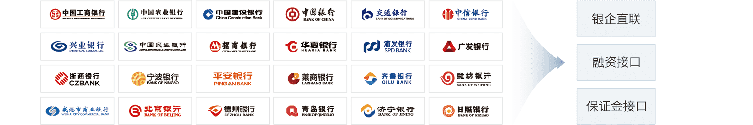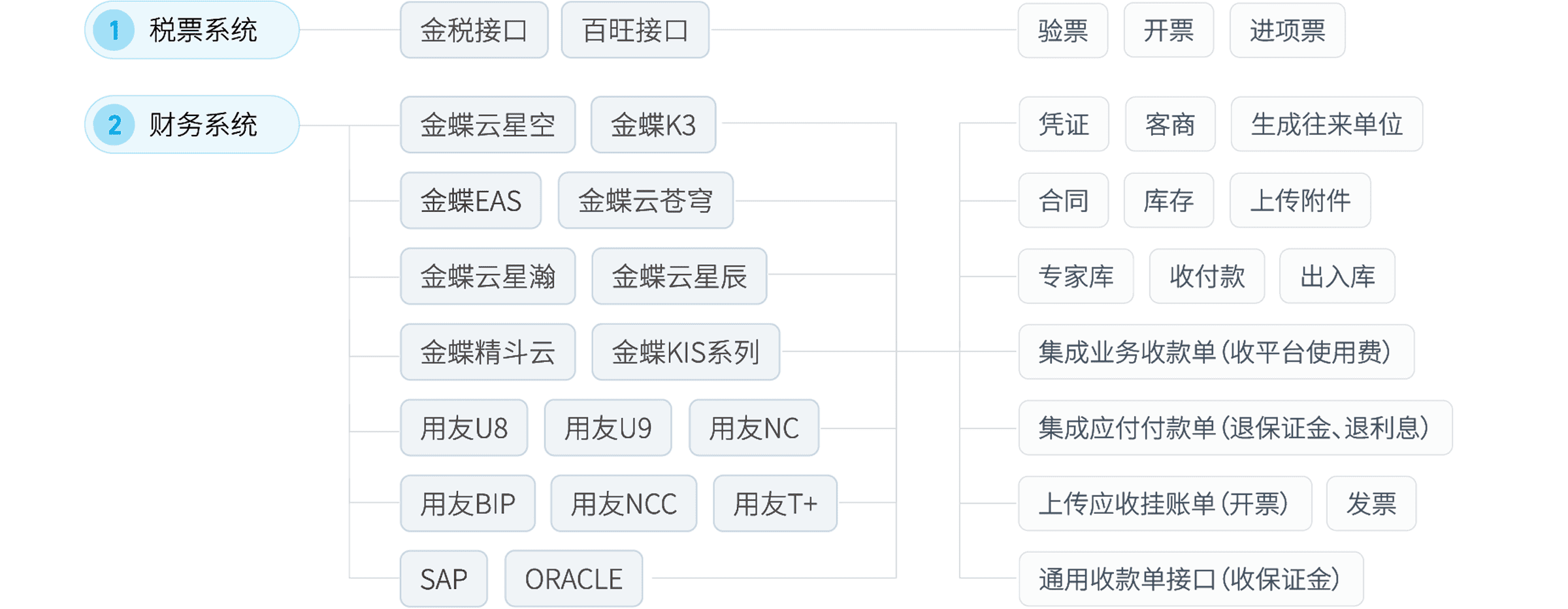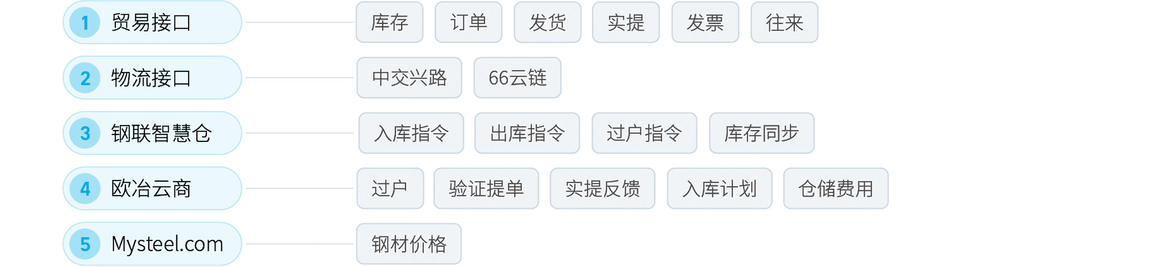 彩虹橋內(nèi)置了豐富的接口服務(wù),包括公共服務(wù)平臺(tái)(政府、銀行等)、第三方商業(yè)應(yīng)用平臺(tái)、各行各業(yè)商用軟件、企業(yè)內(nèi)部應(yīng)用和物聯(lián)網(wǎng)中心等五大接口服務(wù),通過(guò)導(dǎo)入這些內(nèi)置接口服務(wù),企業(yè)可以快速實(shí)現(xiàn)內(nèi)、外部系統(tǒng)互聯(lián)互通和數(shù)據(jù)融合。