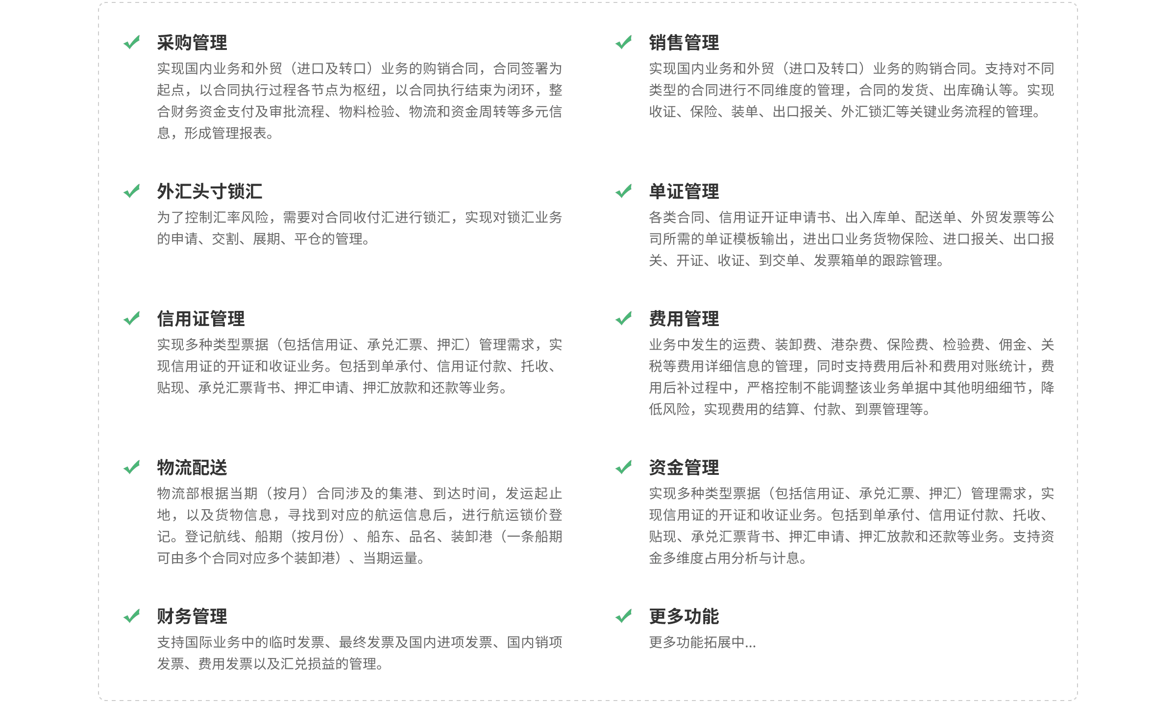 支持內(nèi)貿(mào)業(yè)務(wù)、國際貿(mào)易等業(yè)務(wù)模式;