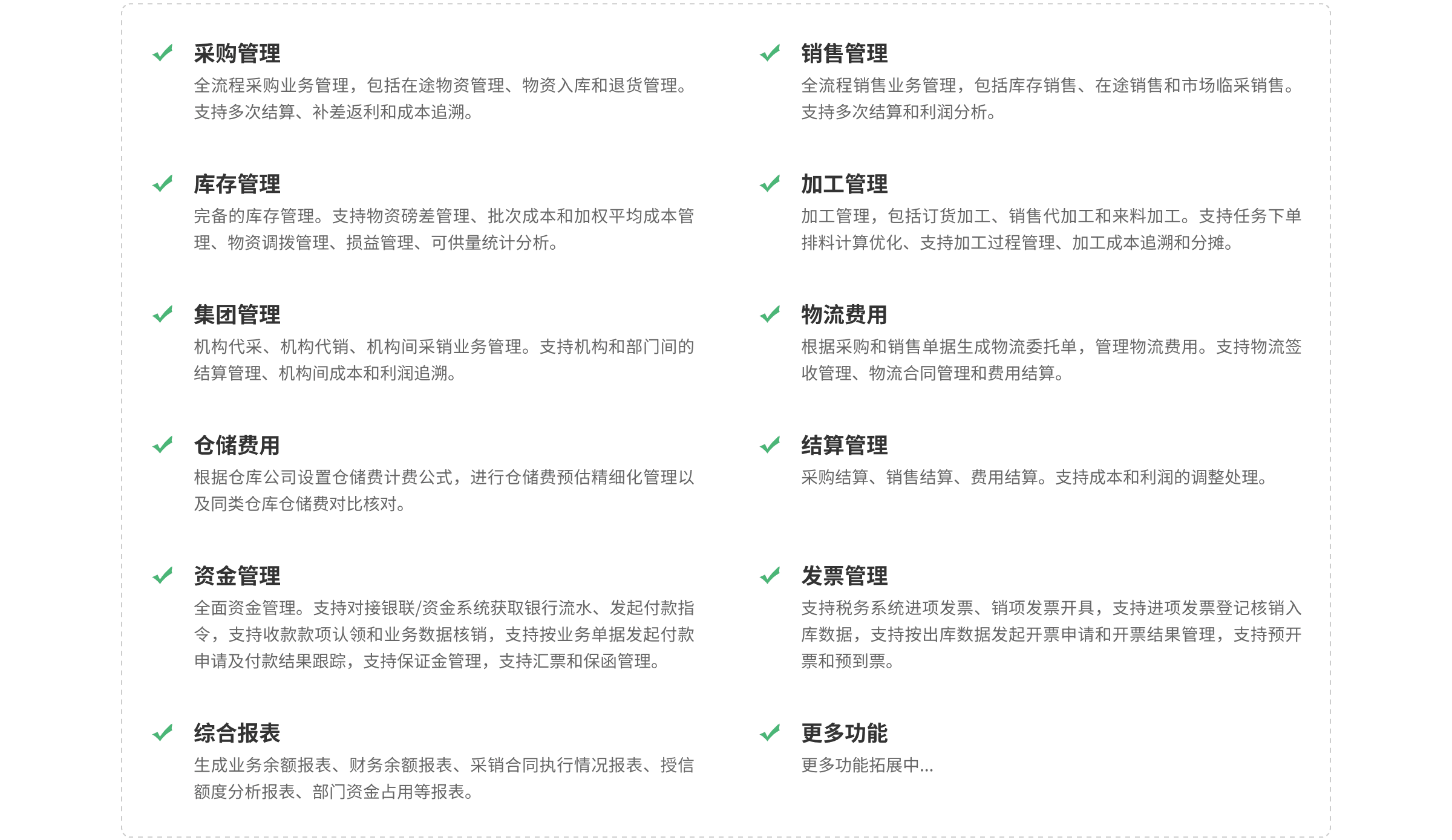 適用于:大宗商品貿(mào)易企業(yè)、生產(chǎn)加工企業(yè)、供應(yīng)鏈服務(wù)企業(yè)和風(fēng)險(xiǎn)管理公司