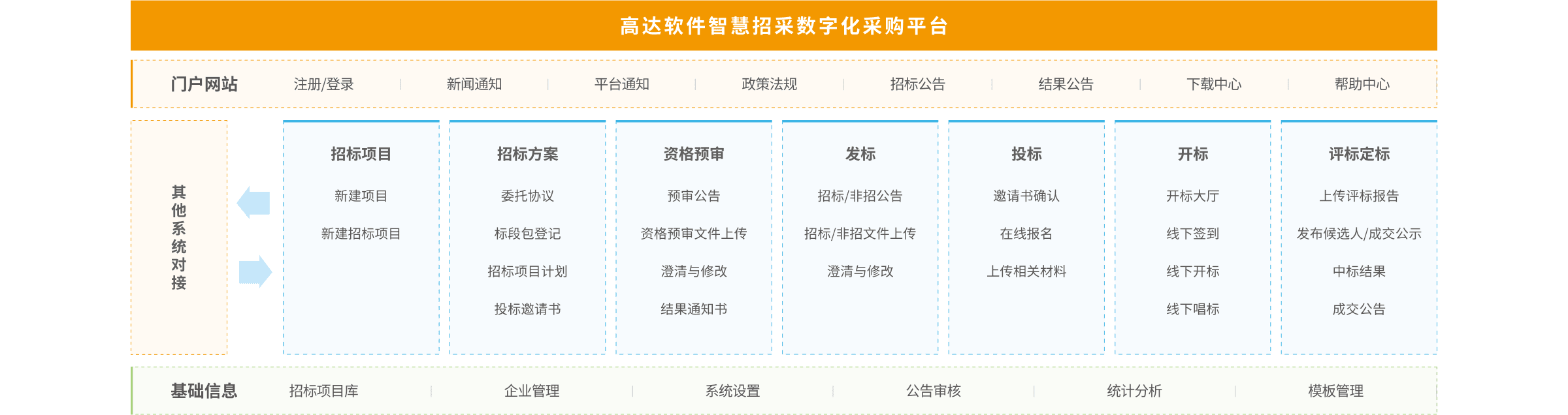 高達電子招投標(biāo)微服務(wù)中臺系統(tǒng)基于微服務(wù)技術(shù)架構(gòu)精心構(gòu)建,對招投標(biāo)過程的項目管理、招標(biāo)方案、資格預(yù)審管理、發(fā)標(biāo)管理、投標(biāo)報名、投標(biāo)文件上傳、線下開標(biāo)管理、線下評標(biāo)管理和定標(biāo)管理等業(yè)務(wù)場景進行業(yè)務(wù)線上線下O2O相結(jié)合,實現(xiàn)招標(biāo)采購快速上線,達到陽光采購和降本增效目標(biāo)。