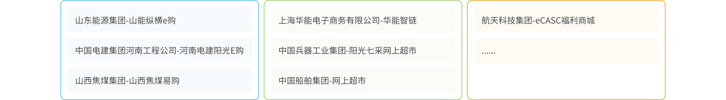 三方供應(yīng)商平臺(tái)對(duì)接:蘇寧、西域、納思達(dá)、歐菲斯、浙江物產(chǎn)、咸亨國際、晨光、得力、震坤行、鑫方盛等。