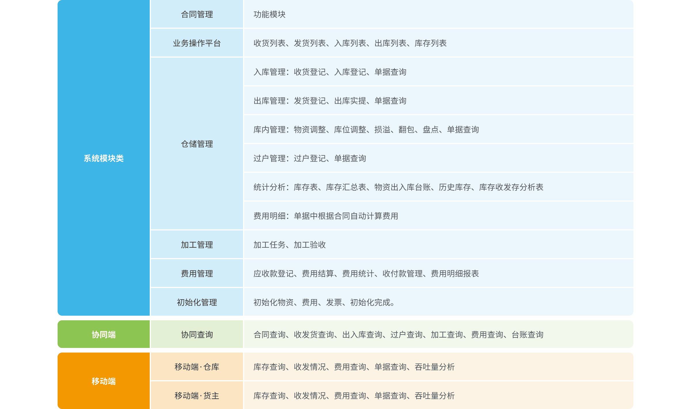 高達(dá)倉儲管理系統(tǒng)主要針對園區(qū)、倉庫、堆場等倉儲業(yè)務(wù)的數(shù)字化管理,支持多種倉庫類型、多種品類的倉儲管理??蓭椭髽I(yè)實(shí)現(xiàn)庫區(qū)位管理、貨主管理、庫存出入庫管理、庫內(nèi)管理、加工管理、費(fèi)用結(jié)算、報表統(tǒng)計(jì)等業(yè)務(wù)精細(xì)化管理,并提供貨主遠(yuǎn)程協(xié)同和移動端功能,讓貨主可在線查詢、對賬,快速提升協(xié)同效率和服務(wù)能力。