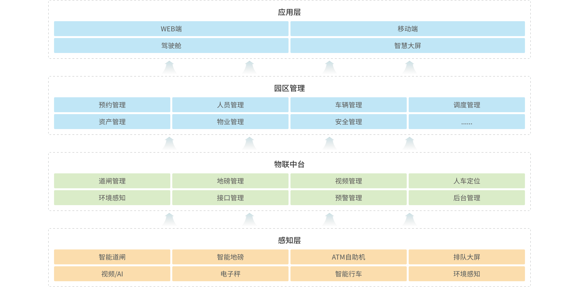 依托物聯(lián)網(wǎng)中臺(tái),在園區(qū)內(nèi)可對(duì)接智能道閘、智能地磅、視頻、行車(chē)、電子秤、環(huán)境感知等物聯(lián)設(shè)備。采集的物聯(lián)設(shè)備數(shù)據(jù)結(jié)合園區(qū)系統(tǒng)可實(shí)現(xiàn)車(chē)輛進(jìn)出園區(qū)的預(yù)約、智能排隊(duì)、自動(dòng)放行、自動(dòng)換單、自動(dòng)過(guò)磅等智能化作業(yè),幫助園區(qū)實(shí)現(xiàn)智能化管理。