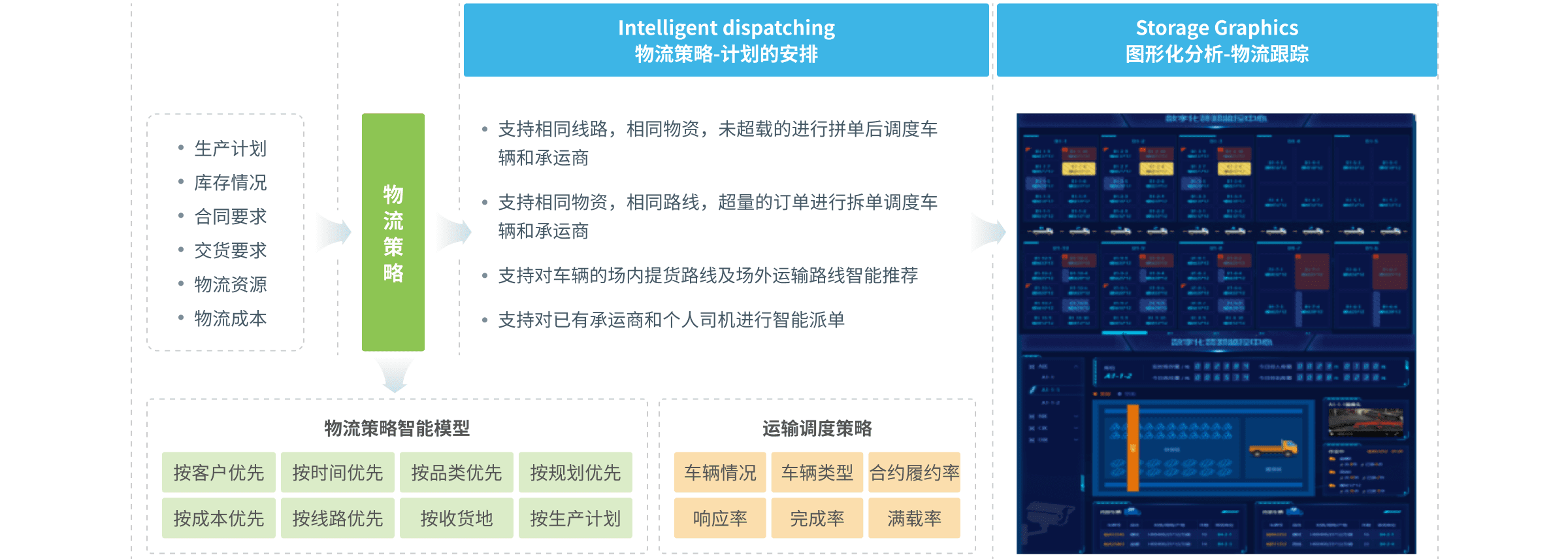 物流配送:從廠內(nèi)和廠外倉儲基地運輸配送產(chǎn)成品的物流計劃、物流任務(wù)、物流過程管理,傳統(tǒng)配送隨機呼叫鋼廠或社會車輛進行作業(yè)。