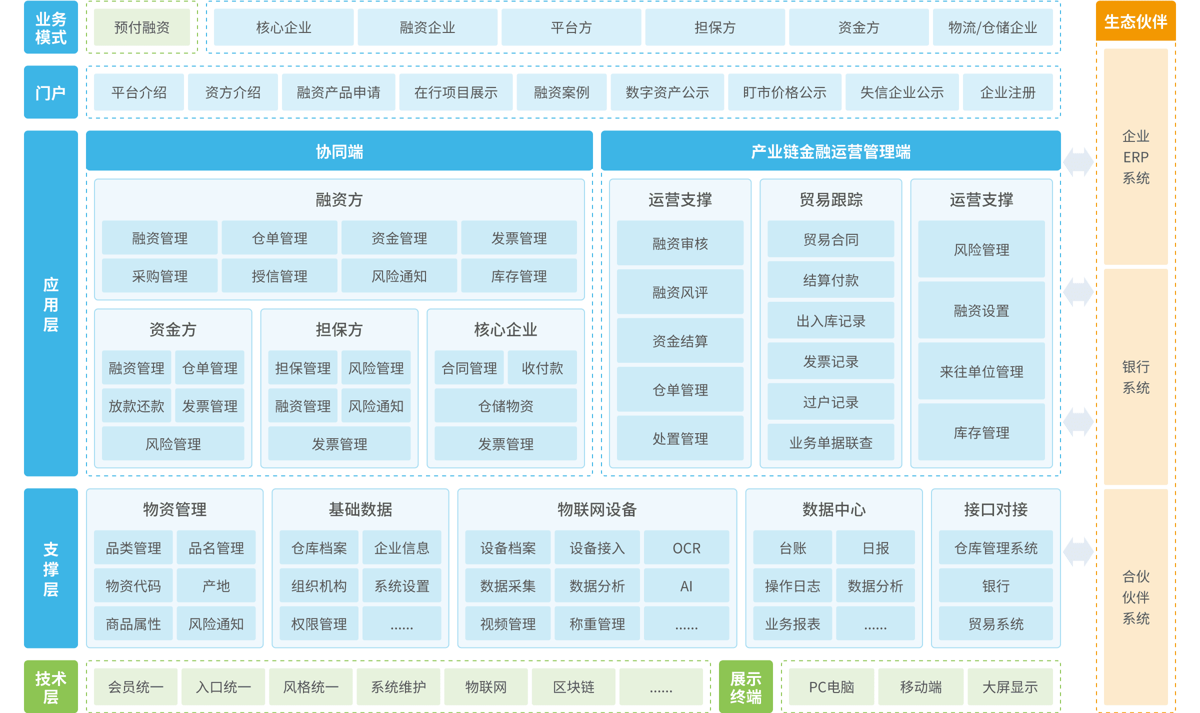 支持預付款融資、倉單融資以及結(jié)合物流平臺實現(xiàn)運費保理等融資模式。