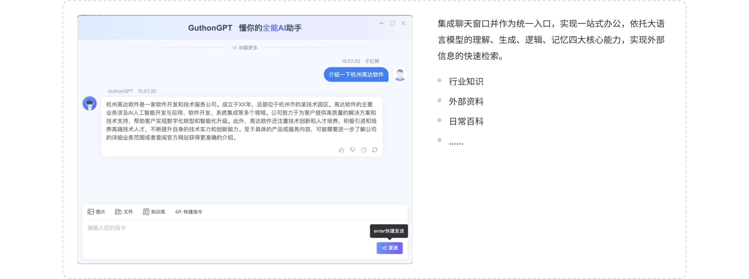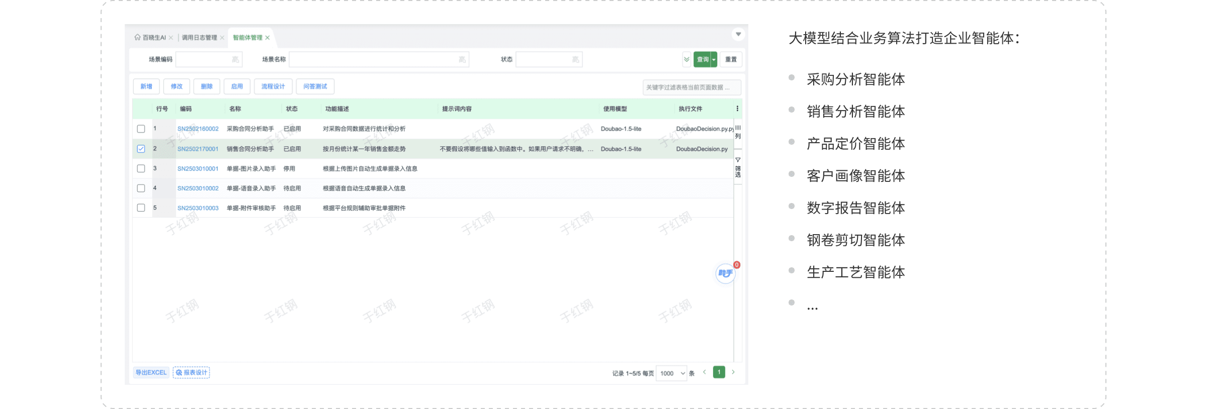 應(yīng)用場(chǎng)景1:企業(yè)AI智能體 基于私有大模型和企業(yè)實(shí)際業(yè)務(wù)場(chǎng)景相結(jié)合,梳理復(fù)雜多變的業(yè)務(wù)需求,設(shè)計(jì)并打造安全可靠的智能體應(yīng)用。