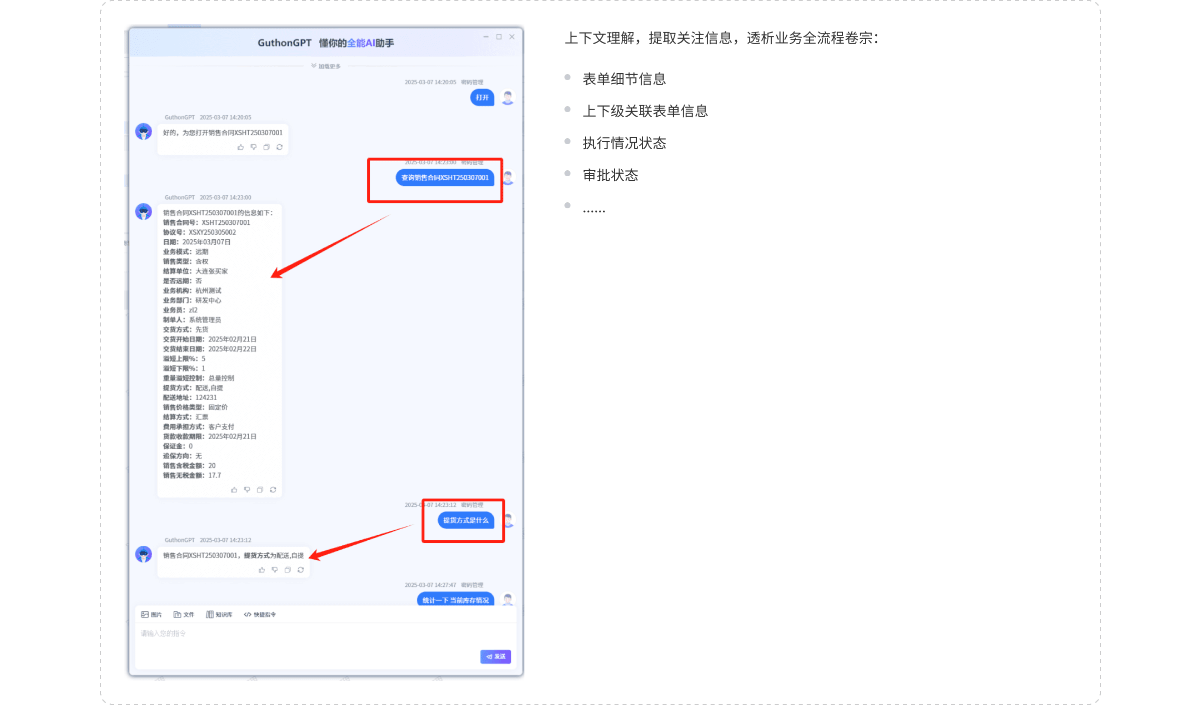 應(yīng)用場(chǎng)景2:上下文語義理解實(shí)現(xiàn)業(yè)務(wù)全流程穿透 通過日常交流語言即可實(shí)現(xiàn)企業(yè)業(yè)務(wù)數(shù)據(jù)的查詢、提取、分析和可視化展示。
