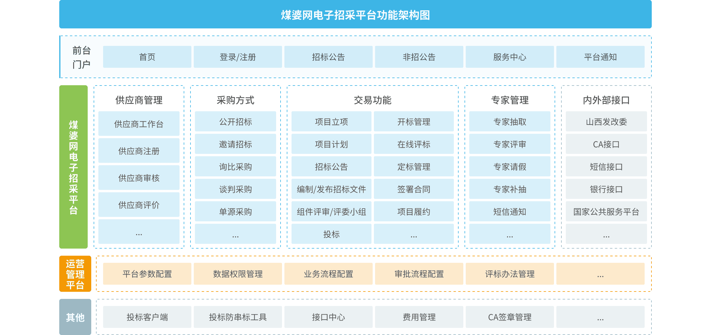 隨著國(guó)家出臺(tái)的《電子招標(biāo)投標(biāo)辦法》明確要求統(tǒng)一技術(shù)標(biāo)準(zhǔn)與數(shù)據(jù)接口,推動(dòng)交易、服務(wù)、監(jiān)督三平臺(tái)分離,為電子招投標(biāo)平臺(tái)的規(guī)范化建設(shè)提供了政策依據(jù)和指導(dǎo)方向。而云計(jì)算、AI、區(qū)塊鏈等先進(jìn)技術(shù)的不斷成熟,也為平臺(tái)的安全性、穩(wěn)定性和高效性提供了堅(jiān)實(shí)的技術(shù)保障。在這樣的大環(huán)境下,山西潞安煤婆科技有限公司為了突破傳統(tǒng)招投標(biāo)模式的瓶頸,提升采購效率、降低采購成本、增強(qiáng)采購?fù)该鞫龋瑥?qiáng)化供應(yīng)鏈管控,促進(jìn)產(chǎn)業(yè)鏈上下游協(xié)同發(fā)展,決定建設(shè)煤婆電子招投標(biāo)平臺(tái),以適應(yīng)時(shí)代發(fā)展的需求,在激烈的市場(chǎng)競(jìng)爭(zhēng)中保持領(lǐng)先地位。