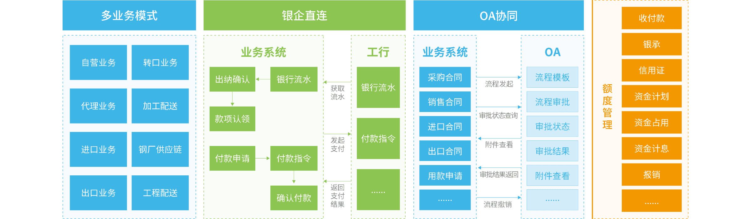 高達(dá)軟件從2011年開(kāi)始和中航國(guó)際鋼貿(mào)合作至今,一直為中航國(guó)際鋼貿(mào)的業(yè)務(wù)信息化提供平臺(tái)和技術(shù)支撐,充分保證中航國(guó)際鋼貿(mào)業(yè)務(wù)的發(fā)展和轉(zhuǎn)型。平臺(tái)集自營(yíng)業(yè)務(wù)、代理業(yè)務(wù)、進(jìn)出口業(yè)務(wù)、加工配送、工程配送、鋼廠供應(yīng)鏈管理等多種業(yè)務(wù)模式的一體化管理,支持多種業(yè)務(wù)流程。集成了資金管理平臺(tái),優(yōu)化了內(nèi)部核算管理,實(shí)現(xiàn)了部門(mén)資金占用、資金計(jì)息、利潤(rùn)考核的統(tǒng)一計(jì)算。通過(guò)與工商銀行的銀企直連對(duì)接,簡(jiǎn)化了收付款的流程和管理。并與OA做了對(duì)接,實(shí)現(xiàn)了流程的協(xié)同辦公。