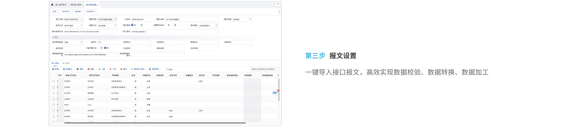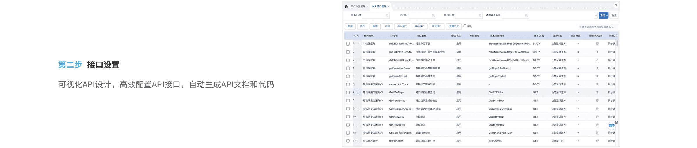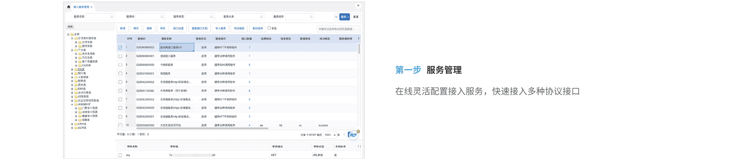 彩虹橋預(yù)置了豐富的接口模板,通過(guò)開(kāi)關(guān)啟停和配置參數(shù)微調(diào)即可實(shí)現(xiàn)內(nèi)置化接口的快速實(shí)施。