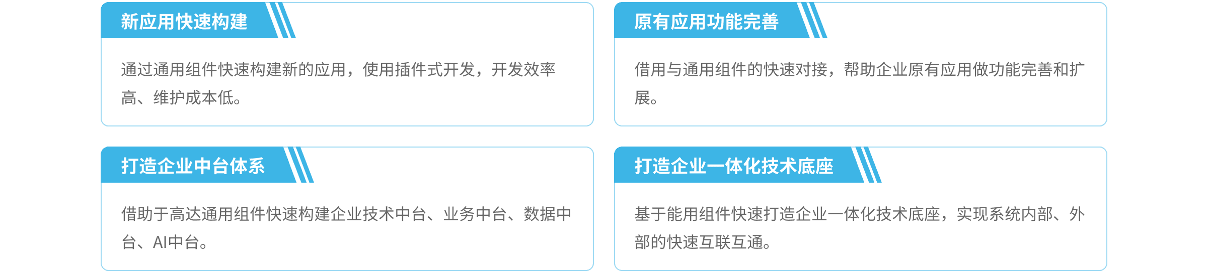 高達通用組件平臺是指通過提煉共性服務,打造的統(tǒng)一中臺化組件,具備高內(nèi)聚、低耦合的特性。通過組件的使用能快速實現(xiàn)對業(yè)務的靈活支撐,滿足不同應用場景的數(shù)字化業(yè)務系統(tǒng)快速構(gòu)建,提升公共技術(shù)、公共業(yè)務的復用能力,同時不斷沉淀能用業(yè)務以避免重復功能的建設(shè),縮短應用建設(shè)周期。高達通用組件主要分為通用技術(shù)組件、通用業(yè)務組件、大宗行業(yè)組件三部份。