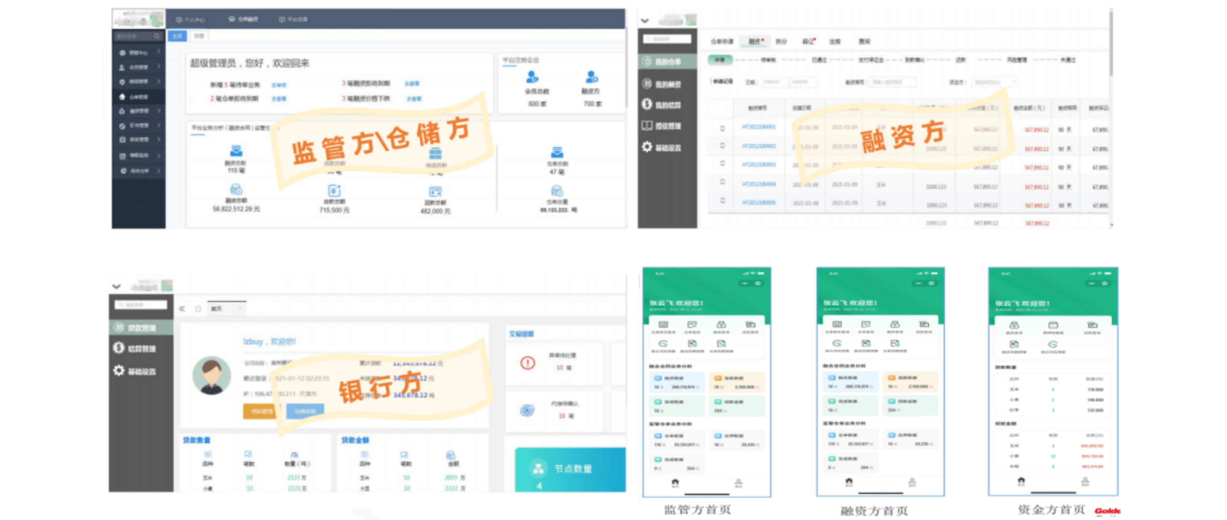 高達(dá)供應(yīng)鏈金融服務(wù)平臺為融資方、資金方、擔(dān)保方、監(jiān)管方提供多角色、在線化的供應(yīng)鏈金融協(xié)同服務(wù),支持為園區(qū)、核心企業(yè)、銀行提供私有化部署,實(shí)現(xiàn)倉單融資過程數(shù)字化、物聯(lián)網(wǎng)化的風(fēng)控管理。