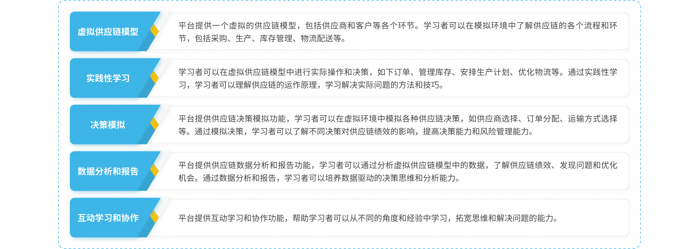高達(dá)供應(yīng)鏈全流程虛擬仿真教學(xué)平臺(tái)是一種基于虛擬仿真技術(shù)的在線教育平臺(tái),旨在為學(xué)習(xí)者提供供應(yīng)鏈管理和運(yùn)作的實(shí)踐性教學(xué)和培訓(xùn)。該平臺(tái)通過模擬真實(shí)的供應(yīng)鏈場(chǎng)景和情境,讓學(xué)習(xí)者能夠在虛擬環(huán)境中進(jìn)行實(shí)際操作和決策,以提高他們的供應(yīng)鏈管理能力和實(shí)踐經(jīng)驗(yàn)。平臺(tái)功能包含虛擬仿真電子沙盤模塊、大宗商品交易虛擬仿真模塊、期現(xiàn)結(jié)合業(yè)務(wù)模塊。