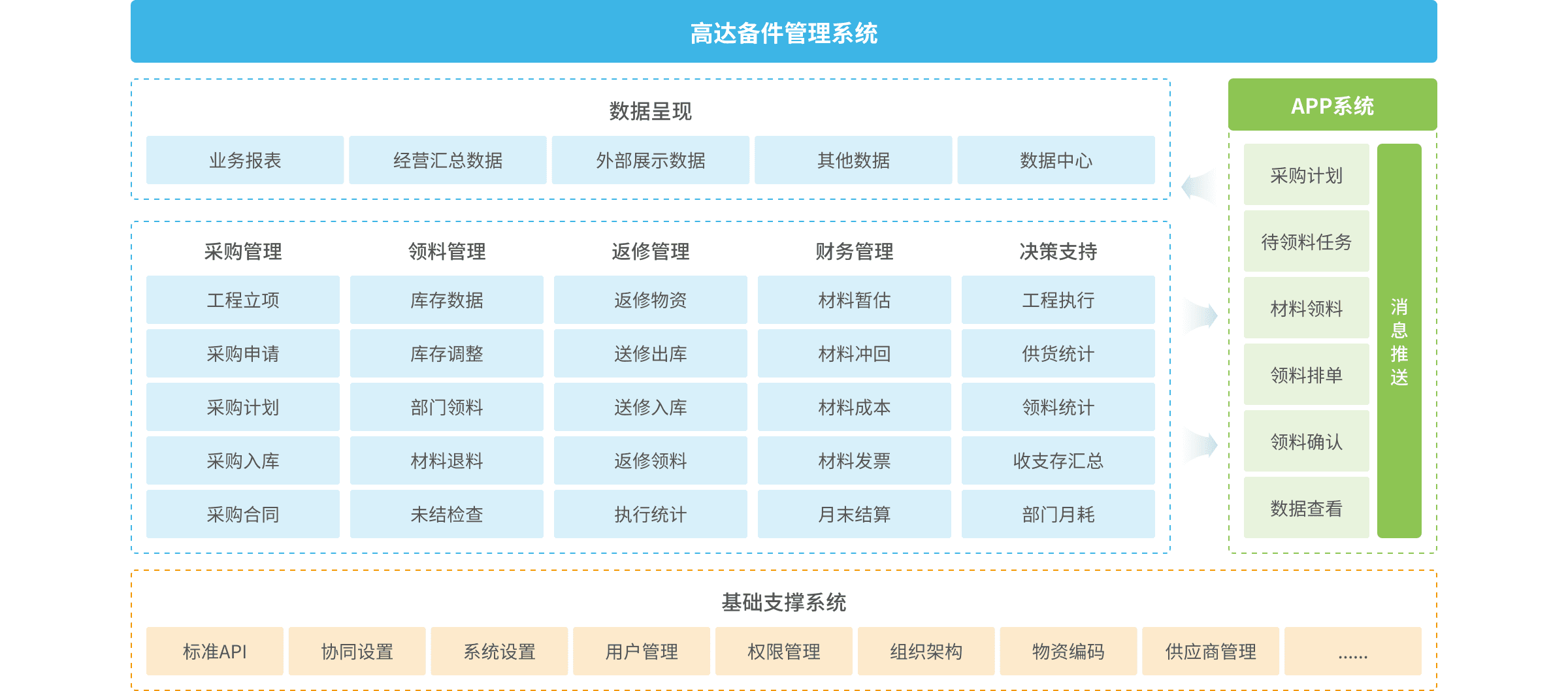 高達燃氣行業(yè)備件管理系統(tǒng)功能包括采購管理、領(lǐng)料管理、返修管理、財務管理、決策報表、APP端等模塊,適用于企業(yè)對備品備件物資的精細化管理,滿足項目立項、計劃申請、材料采購、庫存管理、材料領(lǐng)用、材料成本、材料發(fā)票等過程的管理要求,支持多機構(gòu)、多倉庫、多品類等復雜應用場景,實時準確跟蹤計劃、領(lǐng)用的執(zhí)行進度以及備件去向,幫助企業(yè)建立規(guī)范的備件管理體系,達到降本增效管理目標。