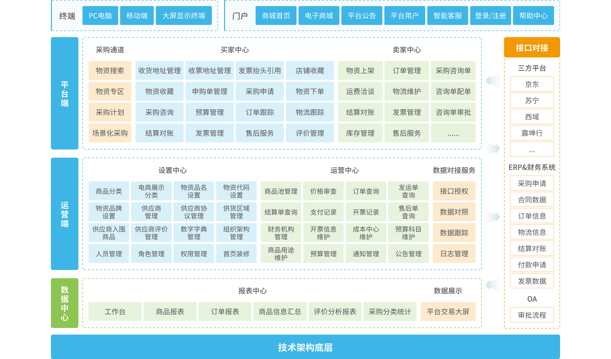 三方供應(yīng)商平臺(tái)對(duì)接:京東、蘇寧、震坤行、得力。
