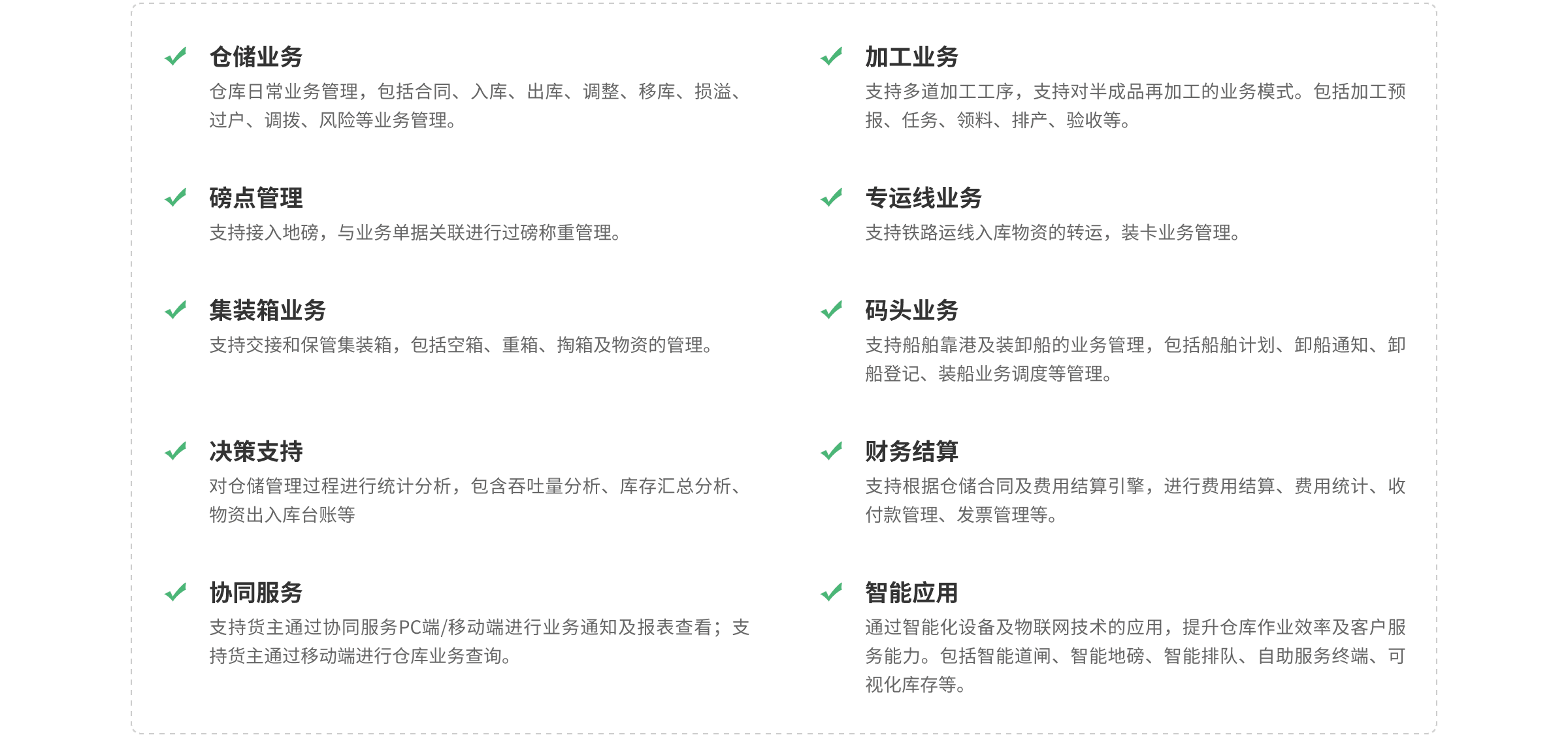 業(yè)務功能 支持多倉庫、多貨主、多品種、多業(yè)務模式、多結算方式的數字化倉儲管理