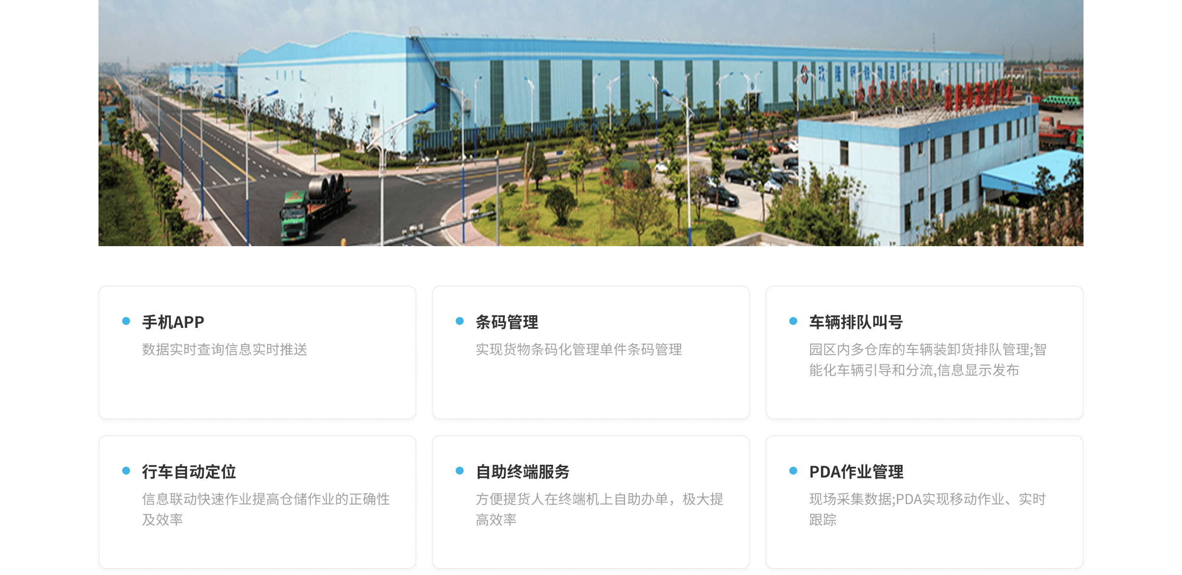 適用于:鋼廠倉庫、第三方大宗商品倉庫、加工中心、港口碼頭和大型物流園