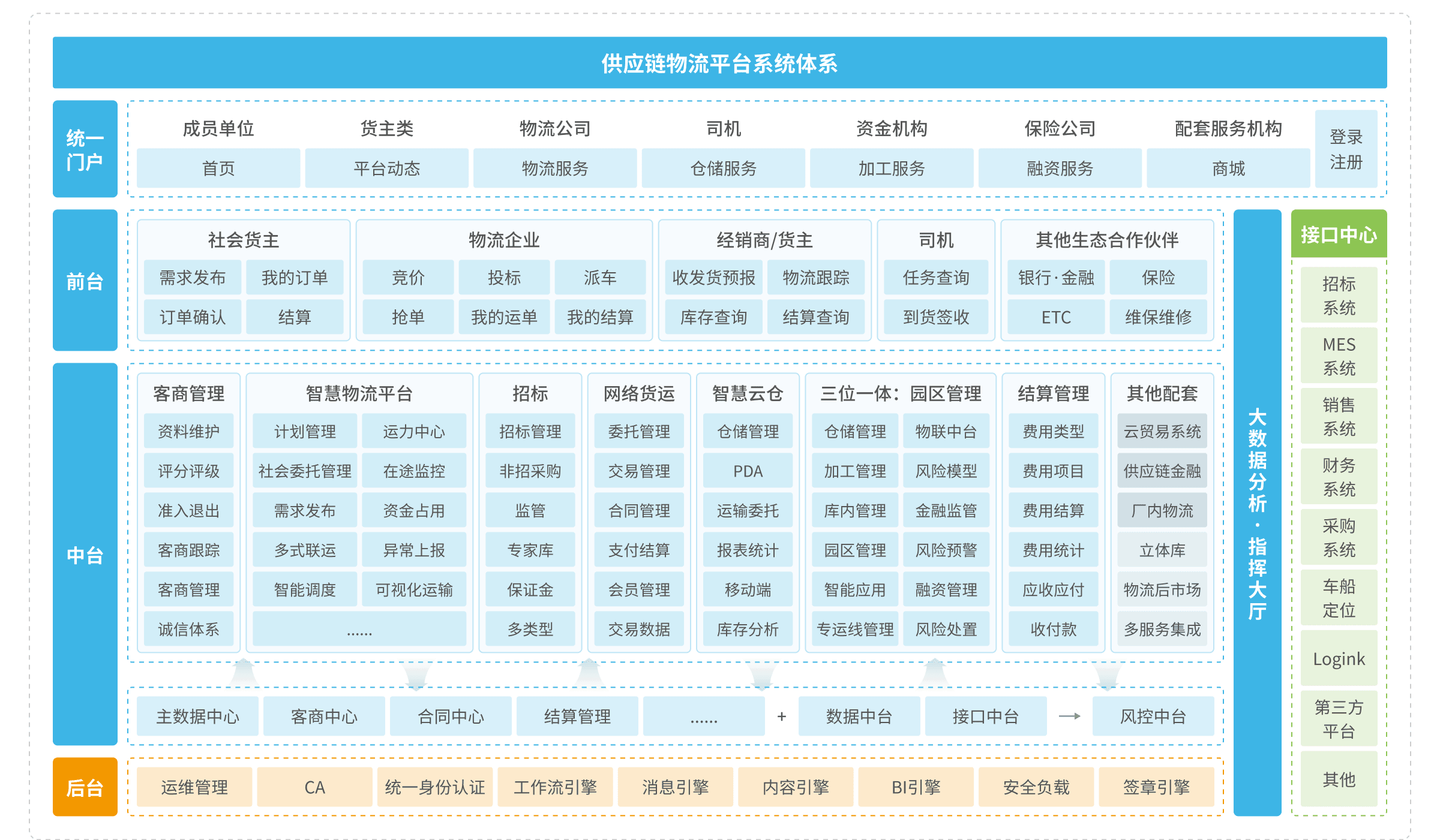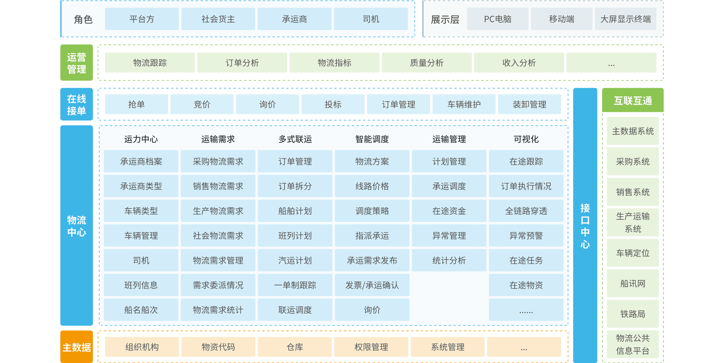 平臺提供多模式運力交易、可視化運輸、結(jié)算支付、運營系統(tǒng)、會員管理等功能,實現(xiàn)貨源競價與搶單、線路競價、網(wǎng)絡(luò)貨運等業(yè)務(wù)模式,將鋼廠成品材、原料材、社會物資以干線、倒短、公鐵聯(lián)運方式納入系統(tǒng)管理,與鋼廠系統(tǒng)、倉儲系統(tǒng)、電子商城系統(tǒng)、供應鏈系統(tǒng)互聯(lián)形成物流全場景生態(tài)圈。