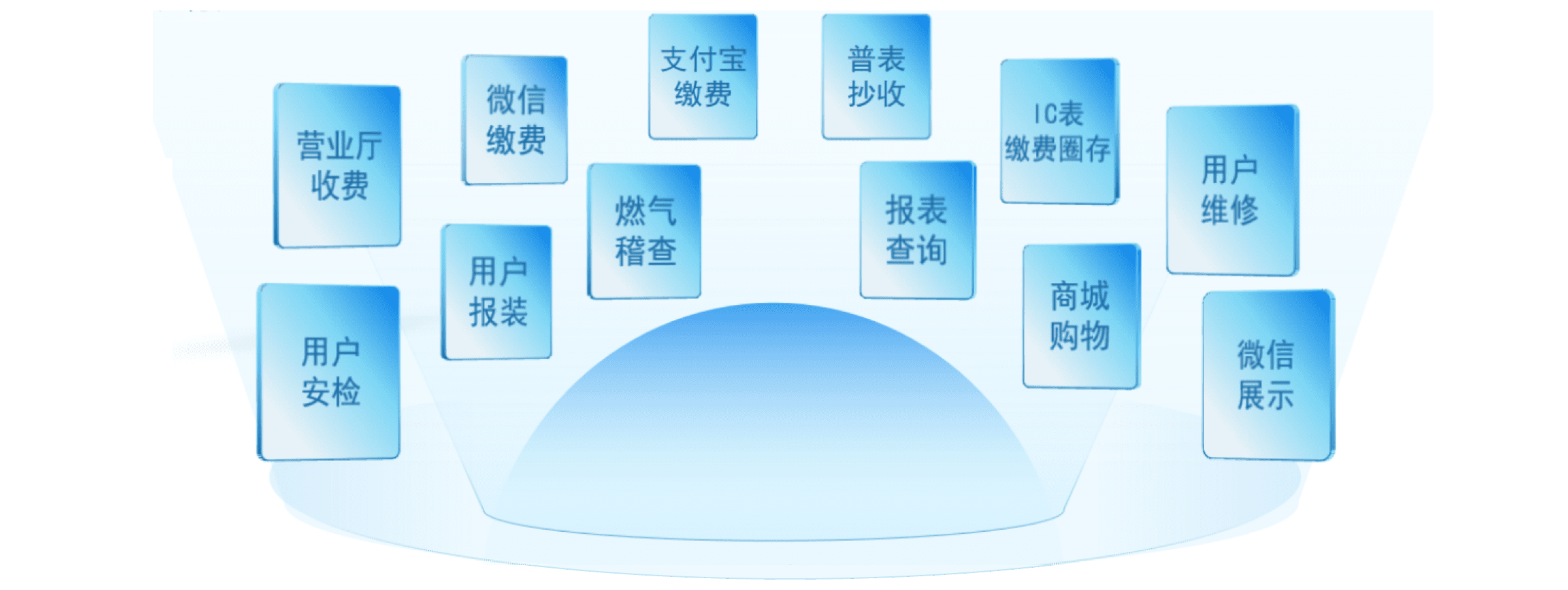 高達(dá)智慧燃?xì)夥?wù)平臺(tái)基于先進(jìn)微服務(wù)架構(gòu)設(shè)計(jì),功能層面囊括了營(yíng)業(yè)廳收費(fèi)、用戶報(bào)裝、普表抄收、IC表繳費(fèi)圈存、用戶安檢、用戶維修、燃?xì)饣椤⒂脩舳嗲览U費(fèi)、工程管理、客服中心、增值服務(wù)管理、資產(chǎn)設(shè)備管理、管線運(yùn)營(yíng)等相關(guān)業(yè)務(wù)。