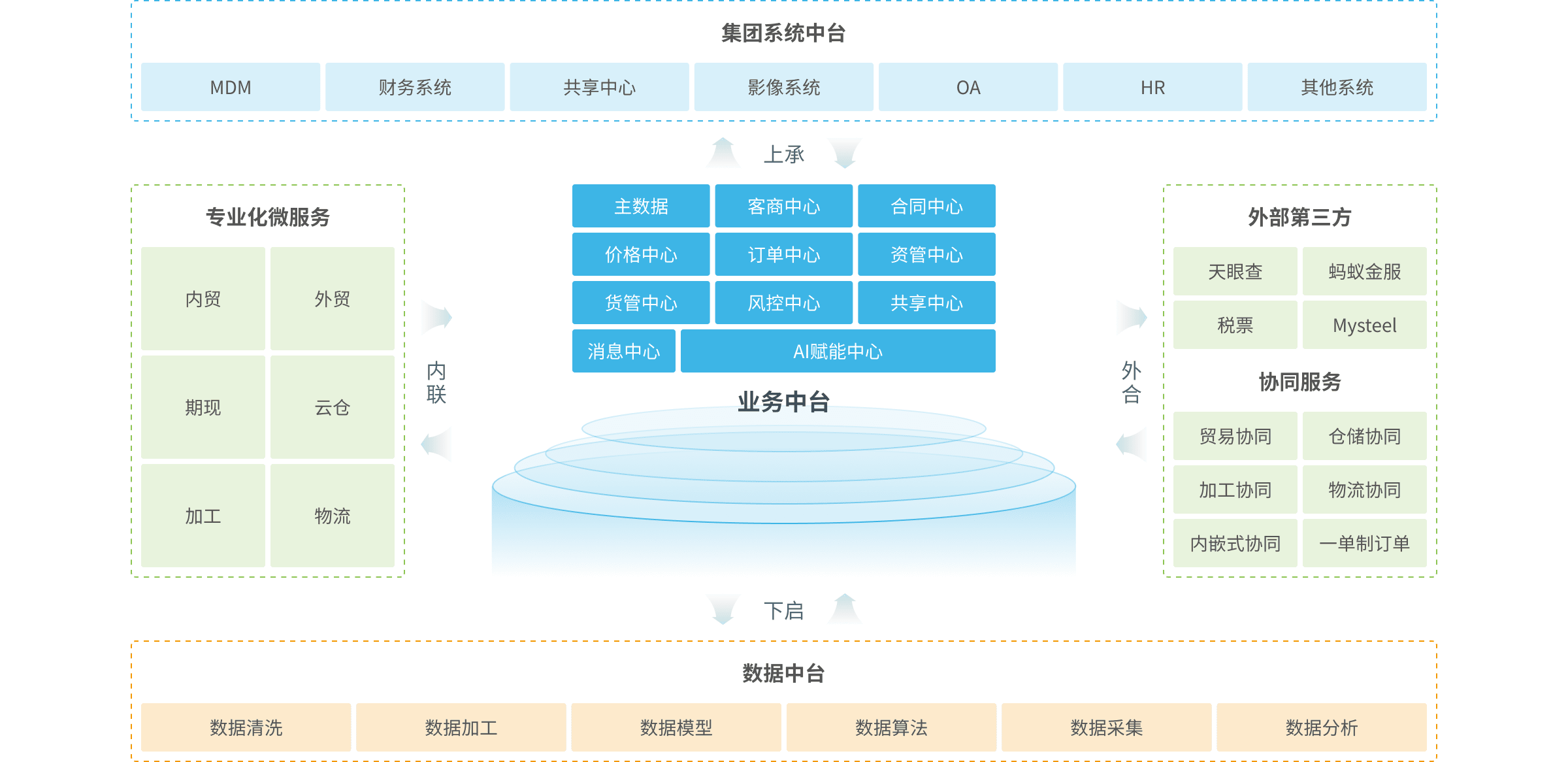 高達(dá)大宗產(chǎn)業(yè)核心企業(yè)的中臺化戰(zhàn)略基于四個方面的布局:
