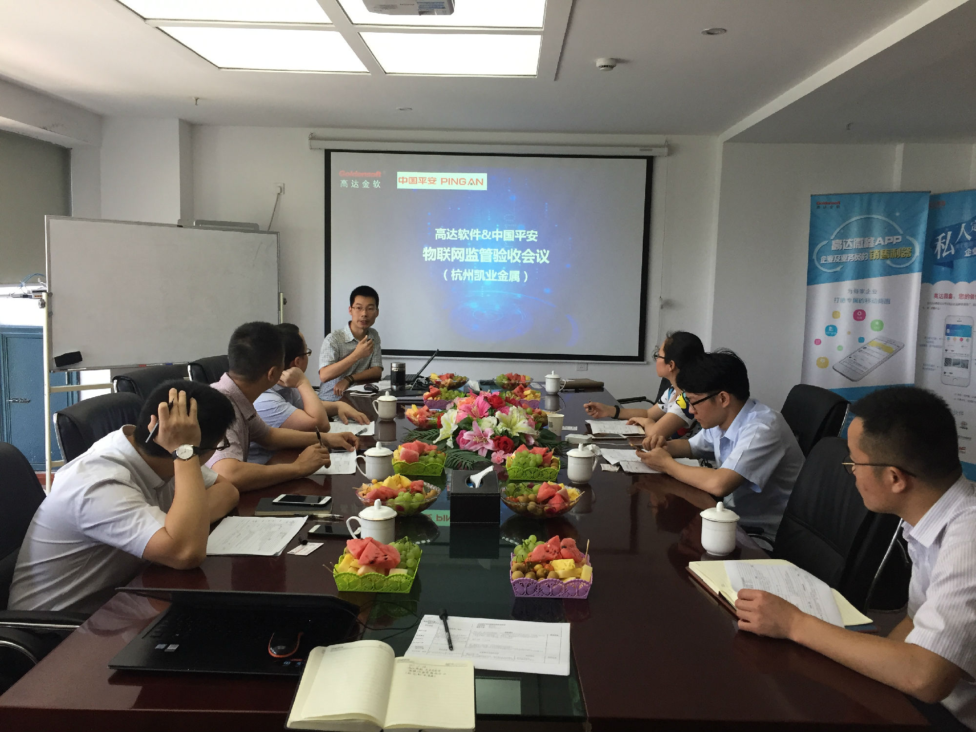2017年5月26日,平安銀行總行、平安銀行杭州分行、南儲浙江公司在杭州高達軟件系統(tǒng)股份有限公司會議室舉行了物聯網監(jiān)管驗收會議(杭州凱業(yè)金屬)。