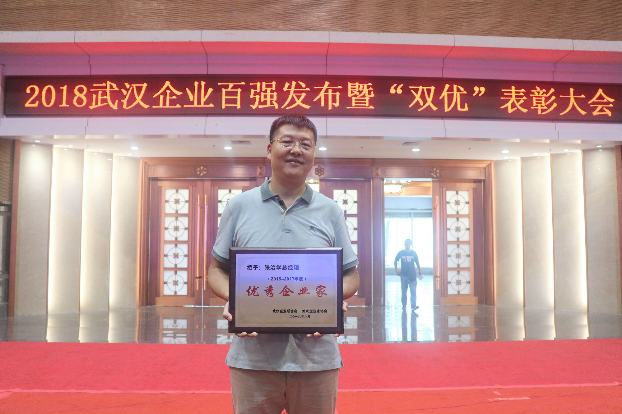 2018年8月30日上午,由武漢企業(yè)聯(lián)合會(huì)、武漢企業(yè)家協(xié)會(huì)等多家單位聯(lián)合舉辦的“2018武漢企業(yè)百?gòu)?qiáng)發(fā)布暨雙優(yōu)表彰大會(huì)”在武漢國(guó)際會(huì)展中心隆重召開。高達(dá)軟件武漢公司總經(jīng)理出席表彰大會(huì)并接受大會(huì)表彰,大會(huì)授予張治學(xué)總經(jīng)理第十七屆(2015-2017年度)“優(yōu)秀企業(yè)家”榮譽(yù)稱號(hào)。