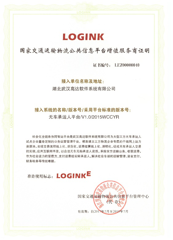 2014年底,張總帶領(lǐng)團(tuán)隊(duì)研發(fā)的軟件產(chǎn)品《高達(dá)無車承運(yùn)物流電商系統(tǒng)》已在大宗商品物流板塊占領(lǐng)了一席之地,公司也取得《國(guó)家交通運(yùn)輸物流公共信息平臺(tái)增值服務(wù)商》資質(zhì)。