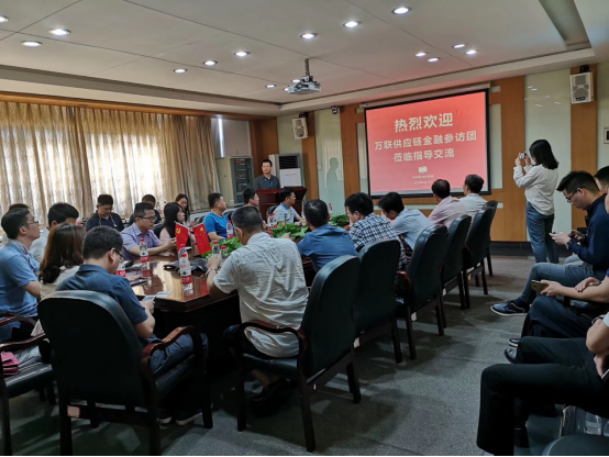 供應(yīng)鏈金融事業(yè)部龐文景經(jīng)理與萬聯(lián)供應(yīng)鏈金融參訪團(tuán)共赴南儲(chǔ)集團(tuán)考察交流。